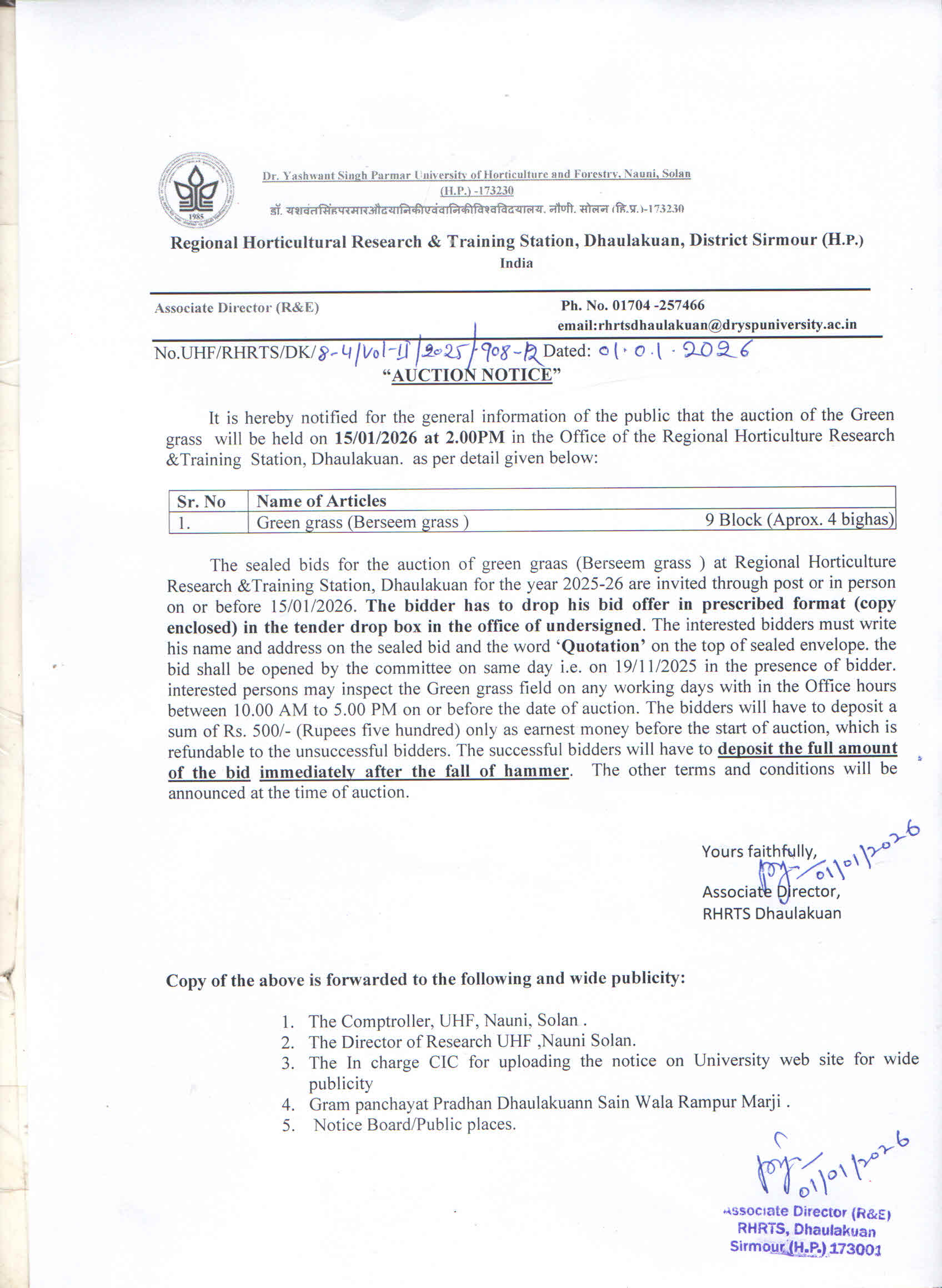 - Auction Notice dated 01.01.2026 of Green Grass (Barseem Grass) -->