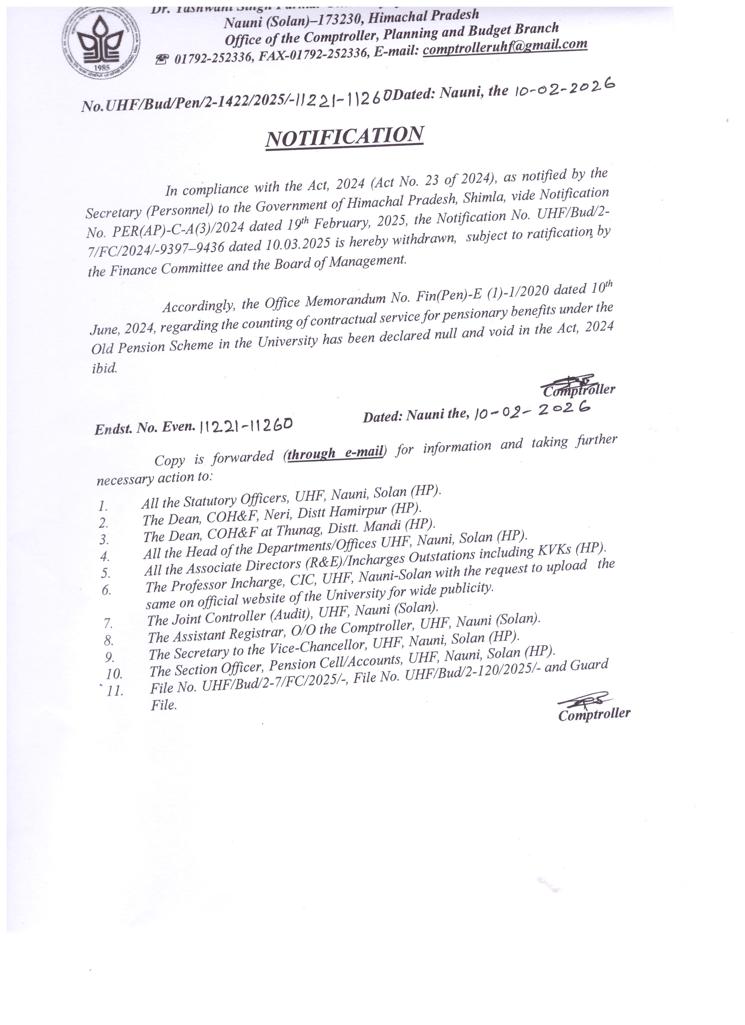- Notification dated 26.11.2025 Introduction of Group Personal Accident Insurance Scheme for Regular, Adhoc, Part-Time, Contractual and Daily Waged Employees of the University. -->