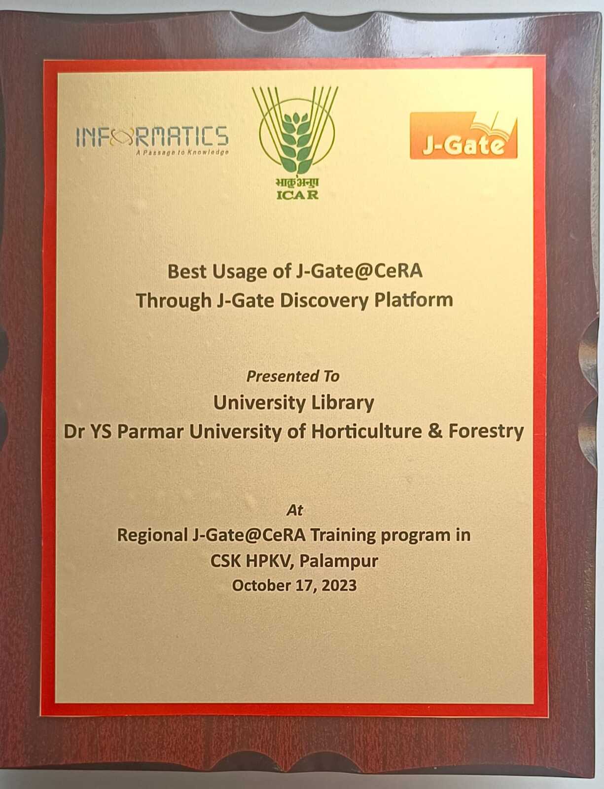 Grabbed "Best Usage Award" of CeRA@J-Gate for the year 2022.