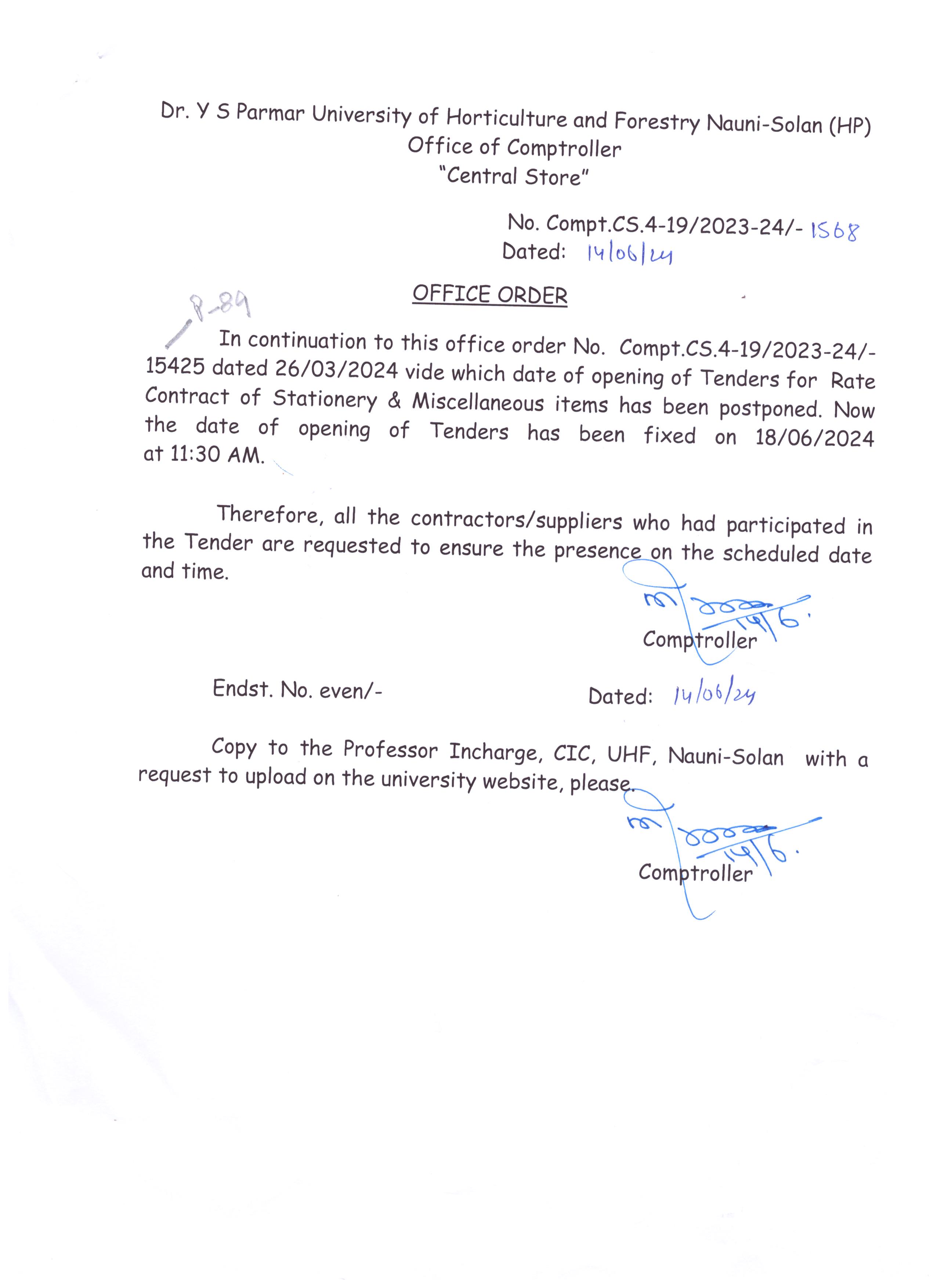 - Office order dated 26.03.2024 regarding postponement of tender opening of Stationery & Miscellaneous items for the year 2024-25.pdf