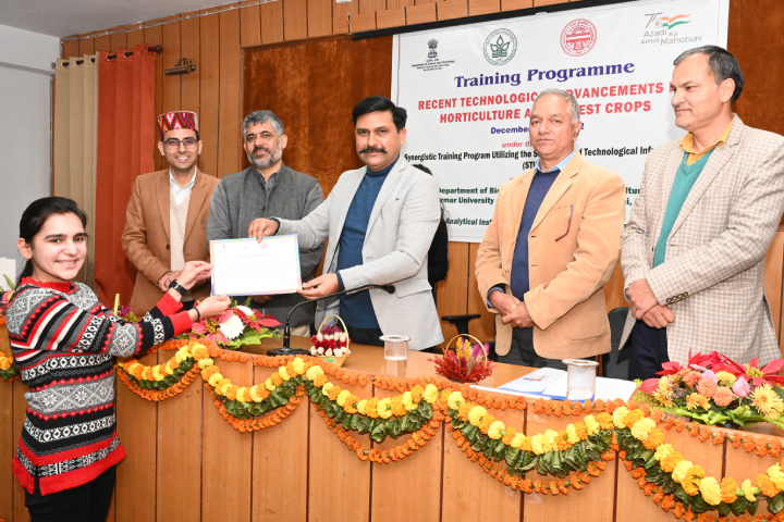 Dr Parul Sharma received ‘Best poster presentation award’on ‘Plant tissue culture based interventions for the propagation of Actinidia species’ in XXII Biennial National Symposium on Climate Smart Agronomy for Resilient Production System and Livelihood Security’ held at ICAR-CCARI, Goa in November 2023.