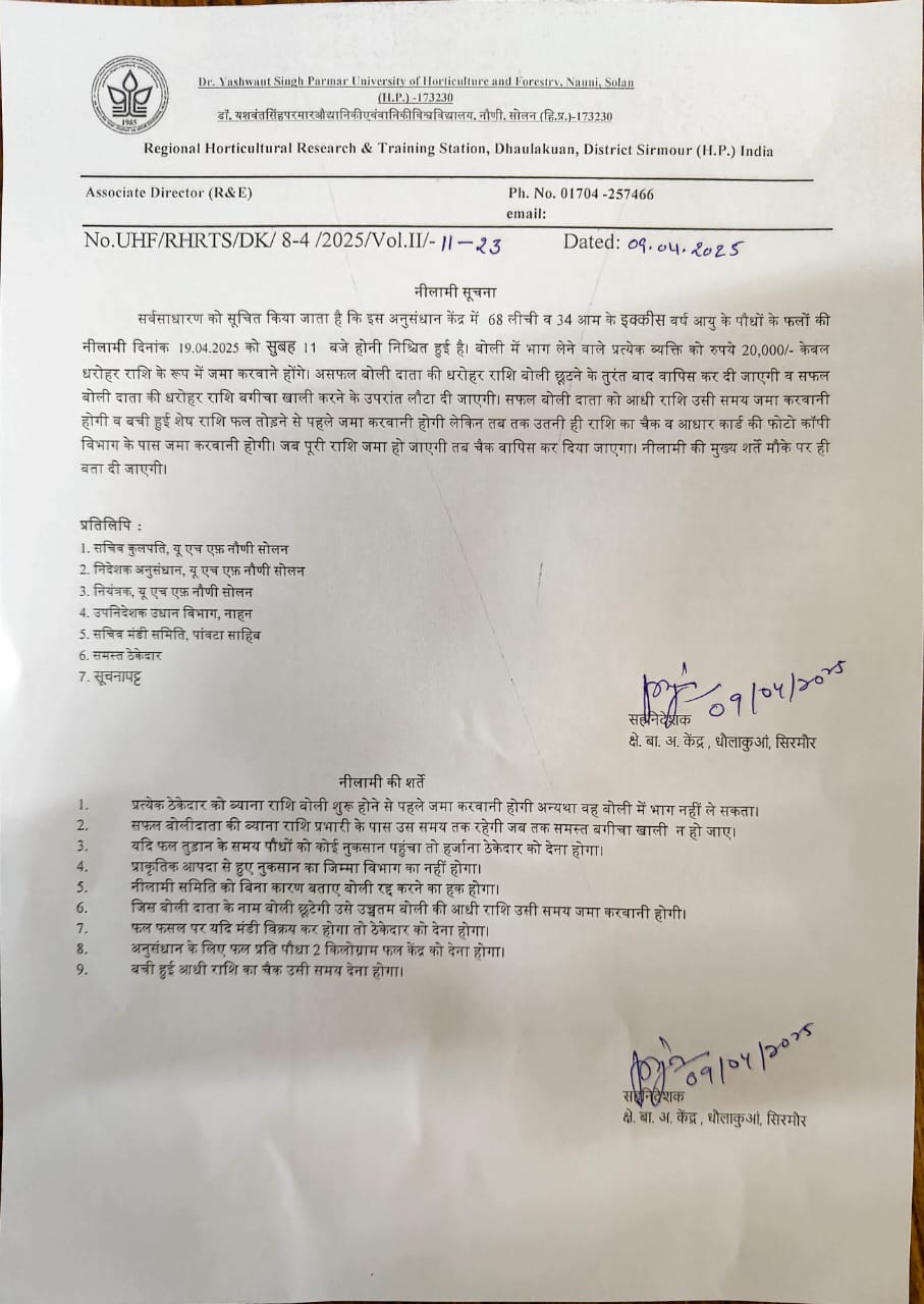 - Auction Notice - Auction Notice for the auction of Apple fruit crops for the year 2025 at RHR&TS Mashobra Shimla.pdf