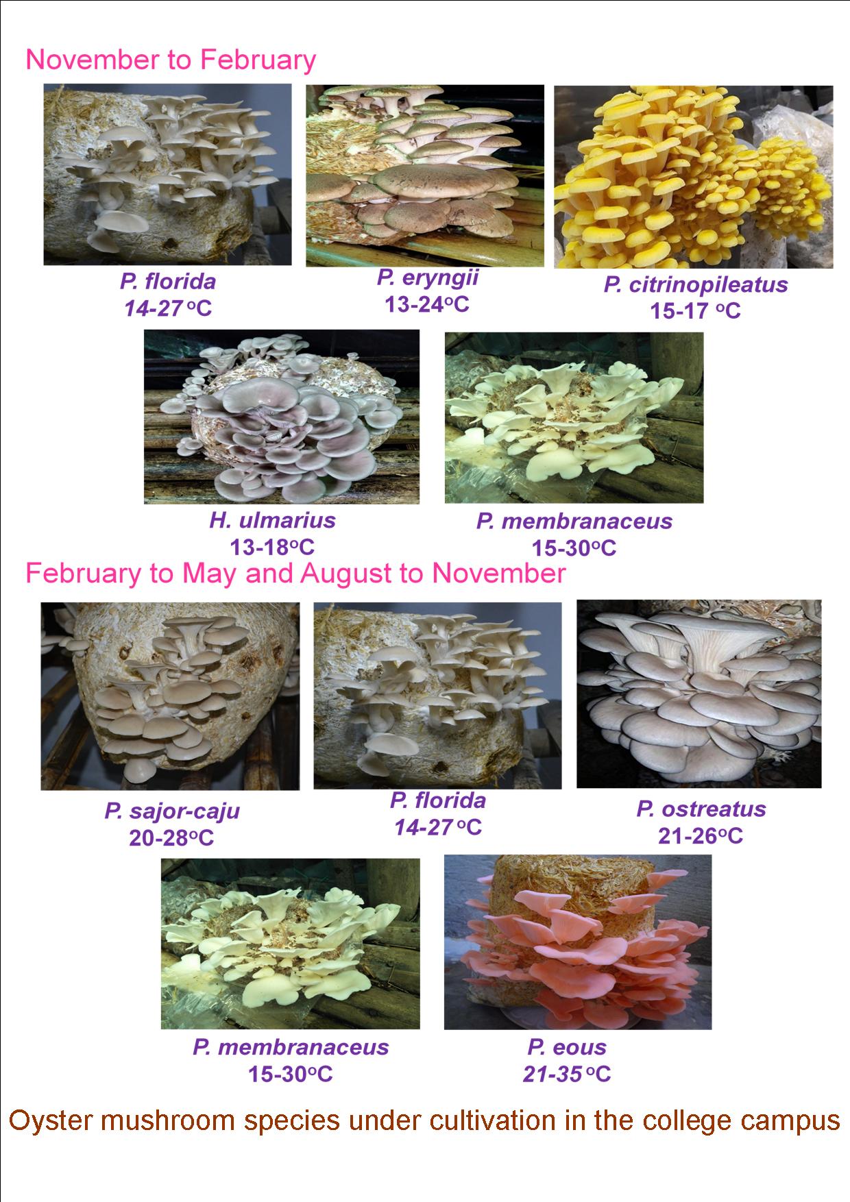 The department is engaged in standardizing the round the year cultivation of edible and medicinal mushrooms in the sub tropical region of the state. We have a dedicated laboratory for the production of spawn which cater to the needs of local farmers.
